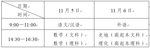 (一)高中起点升本、专科考试时间表