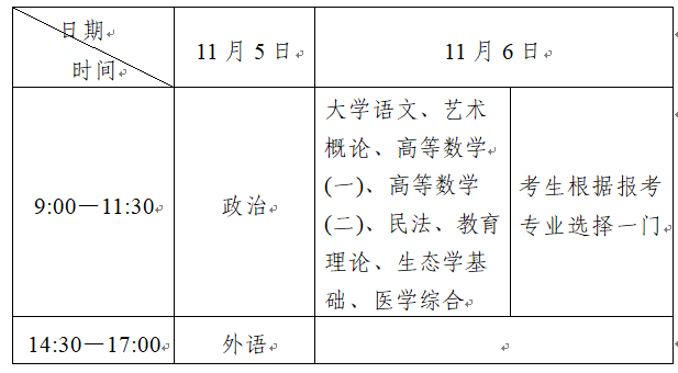 (二)专科起点升本科考试时间表