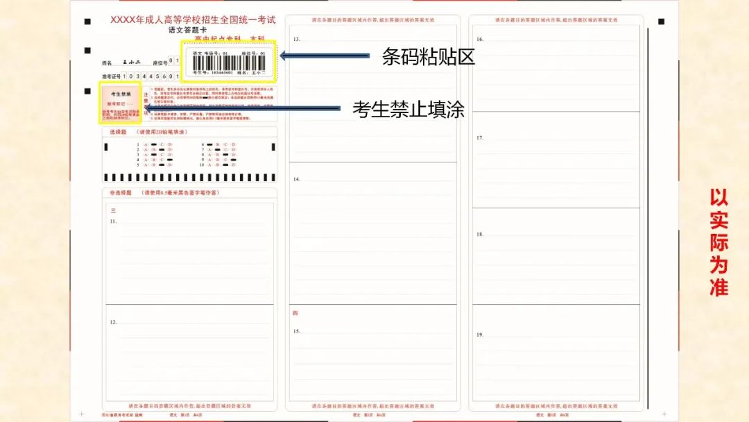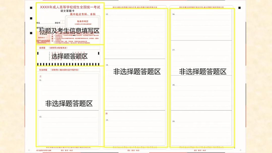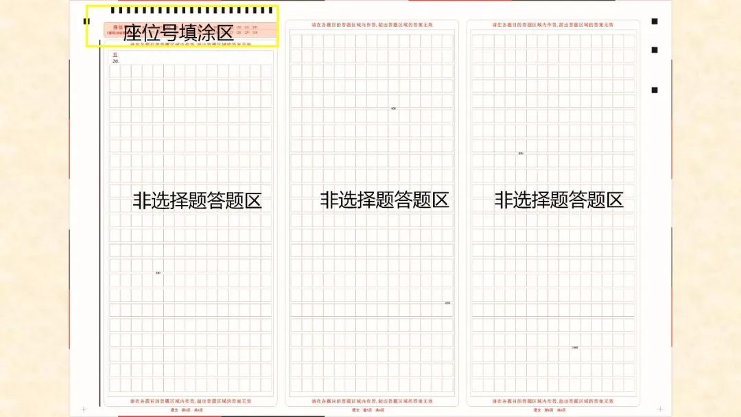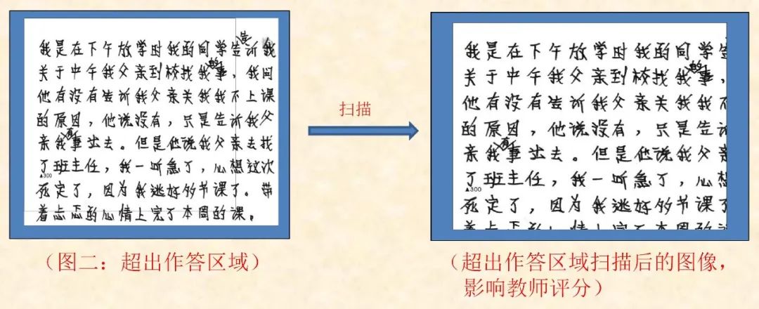 ▶采用网上评卷,考生的答卷经扫描后,每个小题以答题区域框为界,评卷老师只能看到答题区域以内的部分,如果书写答案超过该区域,老师看不到或看不全答案内容,将认为考生该题未答或答案不完整。如下图所示: