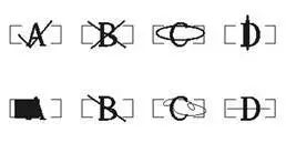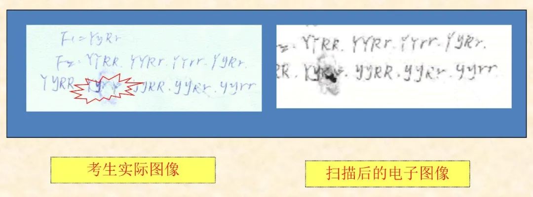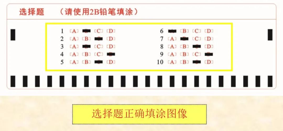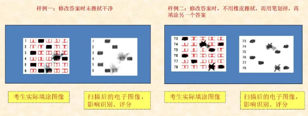 ▶如果某个选项被墨水等物质沾污,会影响计算机识别、评分,如下图所示: